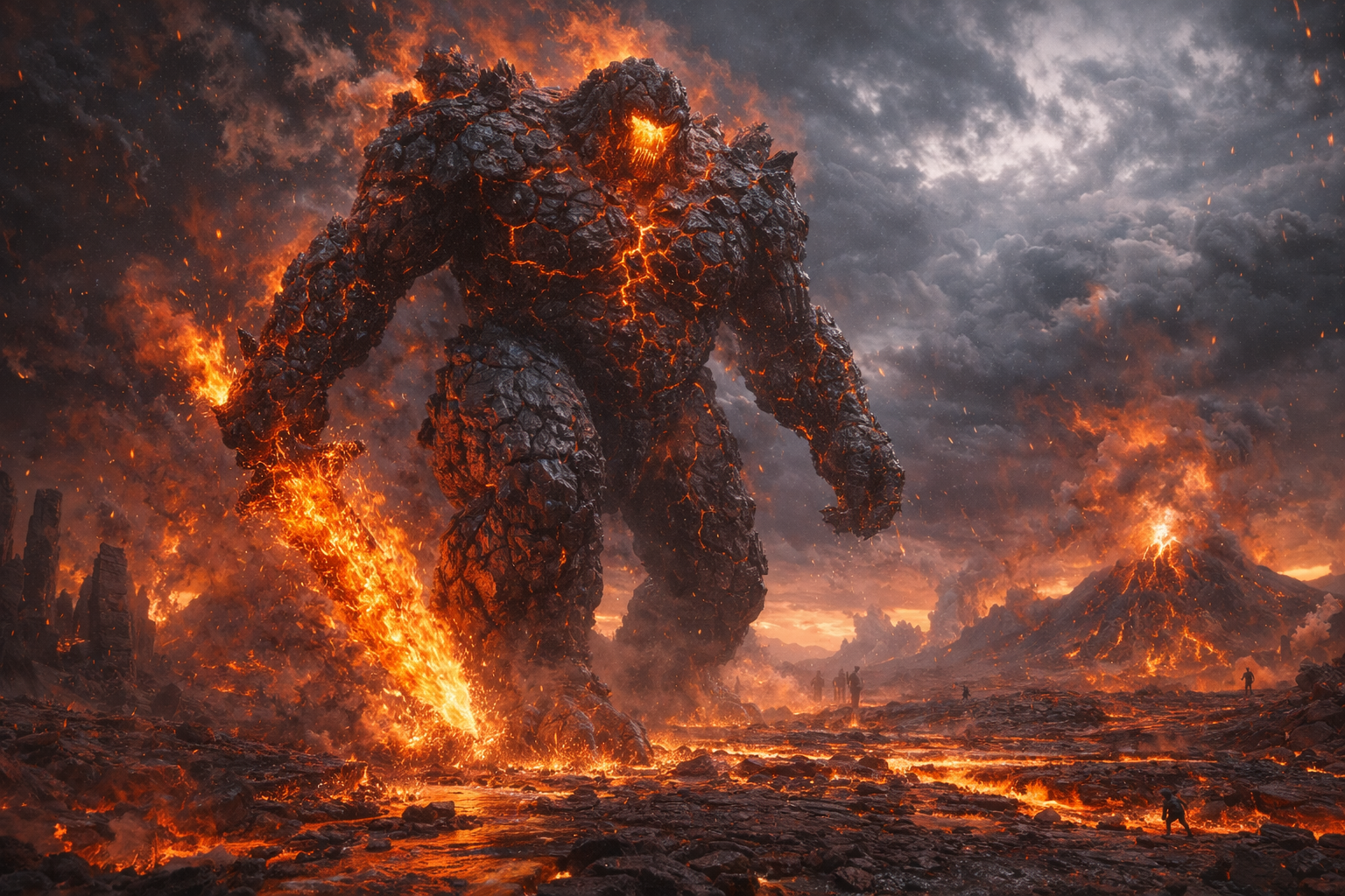 炎の巨人であり火山活動の記憶が反映された存在です。地中から現れる溶岩流は世界の終焉を連想させ、火の支配者として人格化されました。