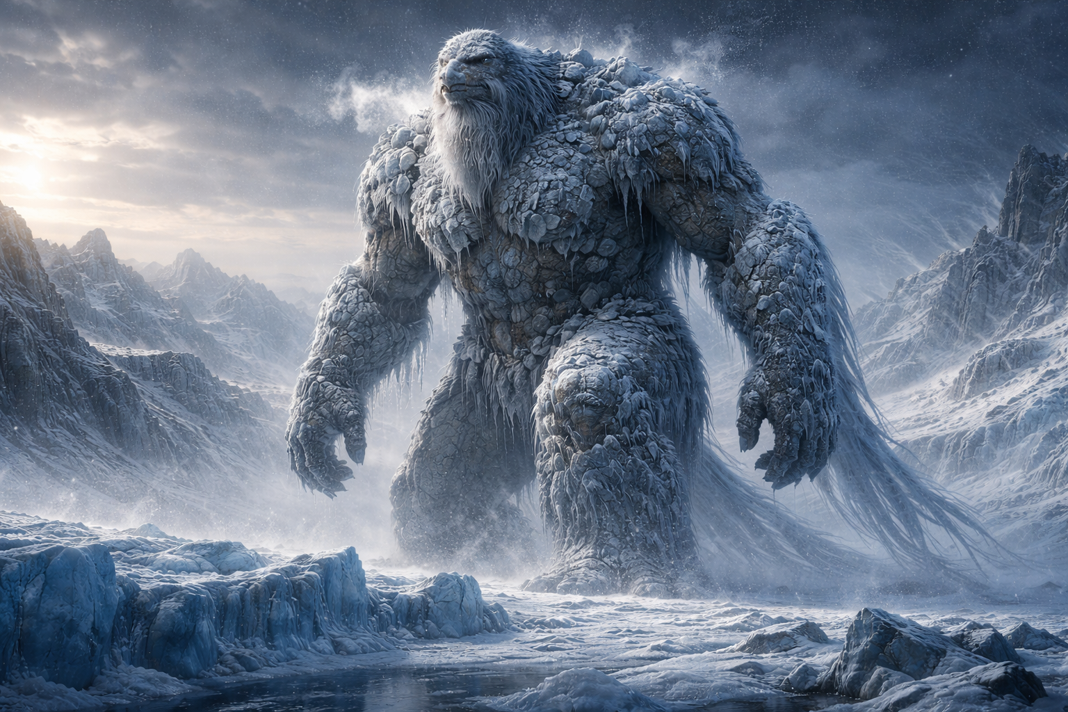 霜の巨人であり寒冷環境そのものを人格化した存在です。氷河や吹雪の圧倒的な力が神話化されています。