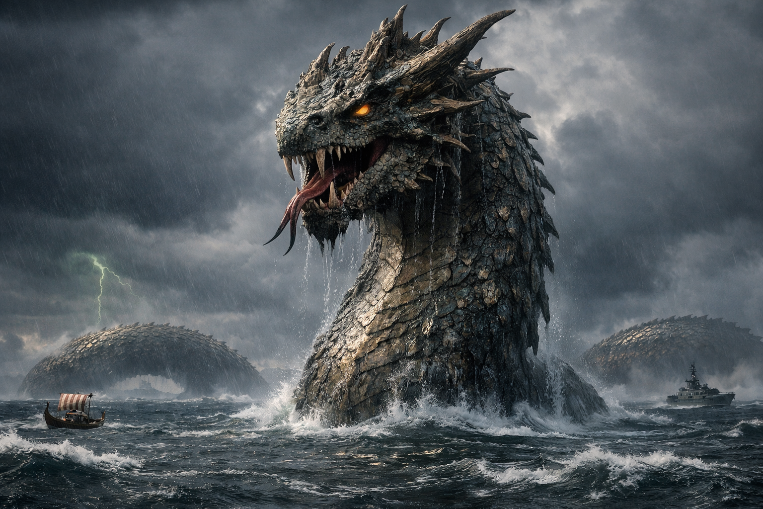 世界を取り巻く海蛇であり境界の象徴です。外洋への航海を行った北欧人にとって海は未知の領域であり、巨大生物の想像はその恐怖の投影です。蛇が脱皮によって成長する生態は循環する世界観と結びつき、終末においてトールと相打ちになる構造は自然と人間の相克を示します。
