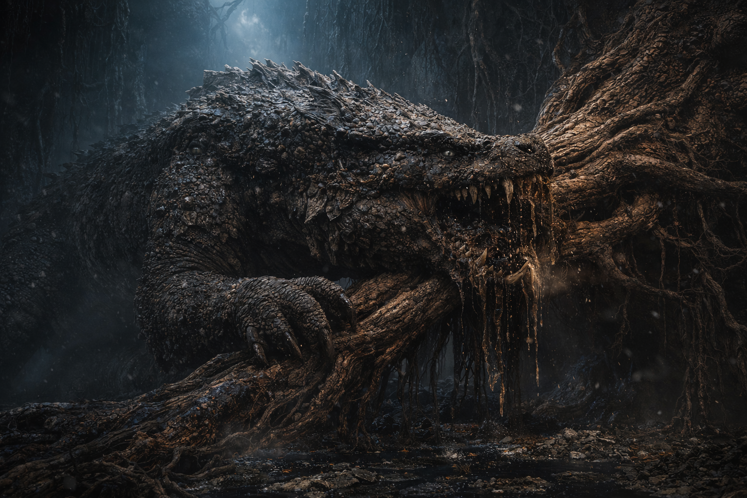 世界樹の根をかじる竜であり、内部から秩序を崩壊させる存在です。地下に棲む爬虫類や樹木を食害する生物の観察が反映され、見えない場所から進行する腐敗の象徴となっています。