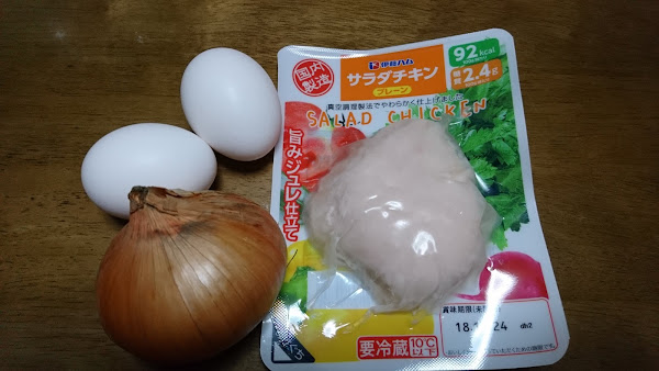 こちらが、今回の材料の豚もも肉切り落とし、冷凍讃岐うどん、キャベツの千切りです。このほかに、トッピングとしていり卵と...