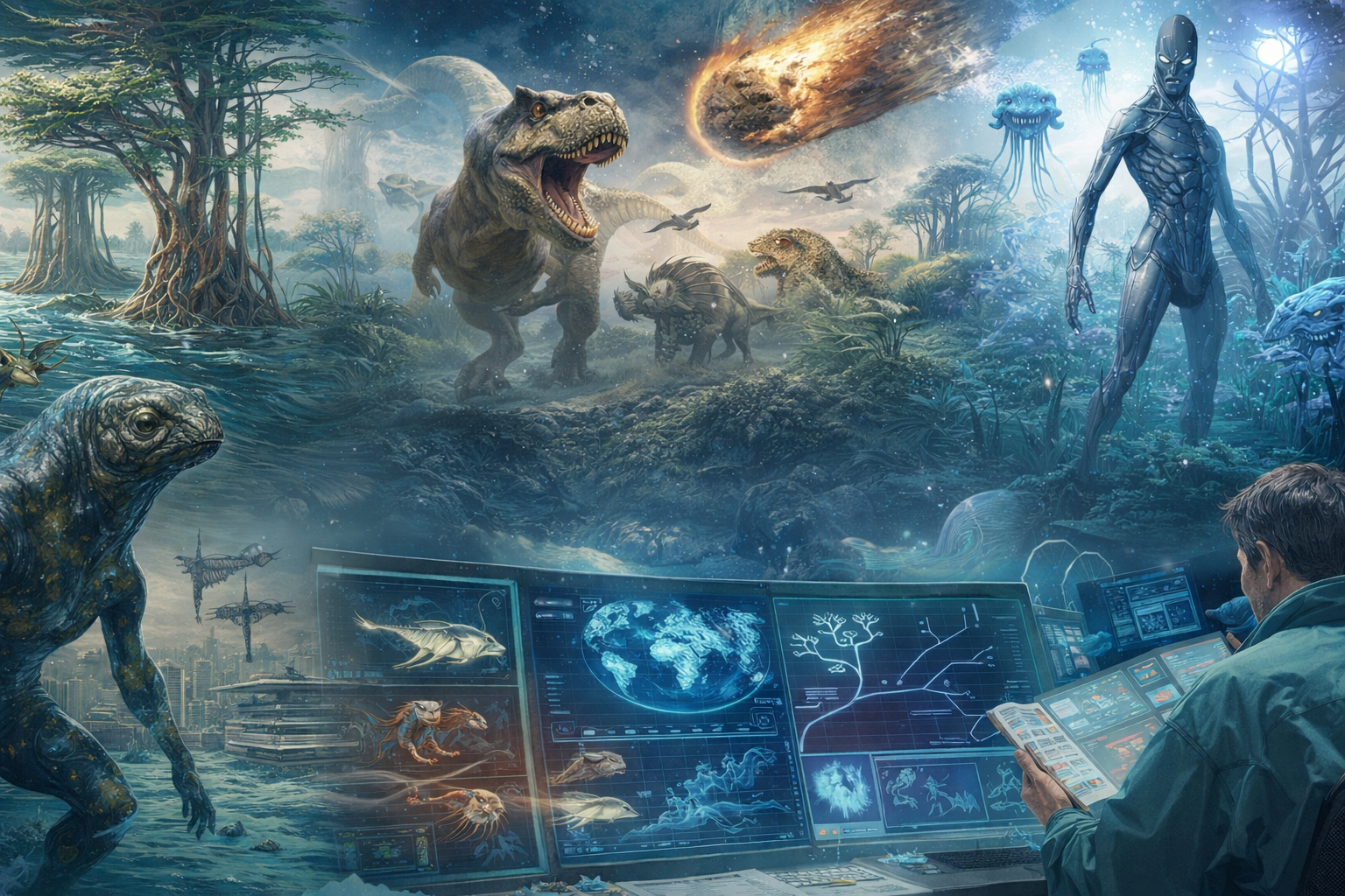 本シリーズでは、単なる空想や物語ではなく、実在のデータと進化理論を基盤とした「仮想進化研究」として、分岐した地球史と生物相の可能性を体系的に記録しています。